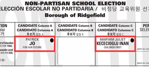 Patrick Jo and Maryam Juliet Kececioglu Inan for Ridgefield School Board